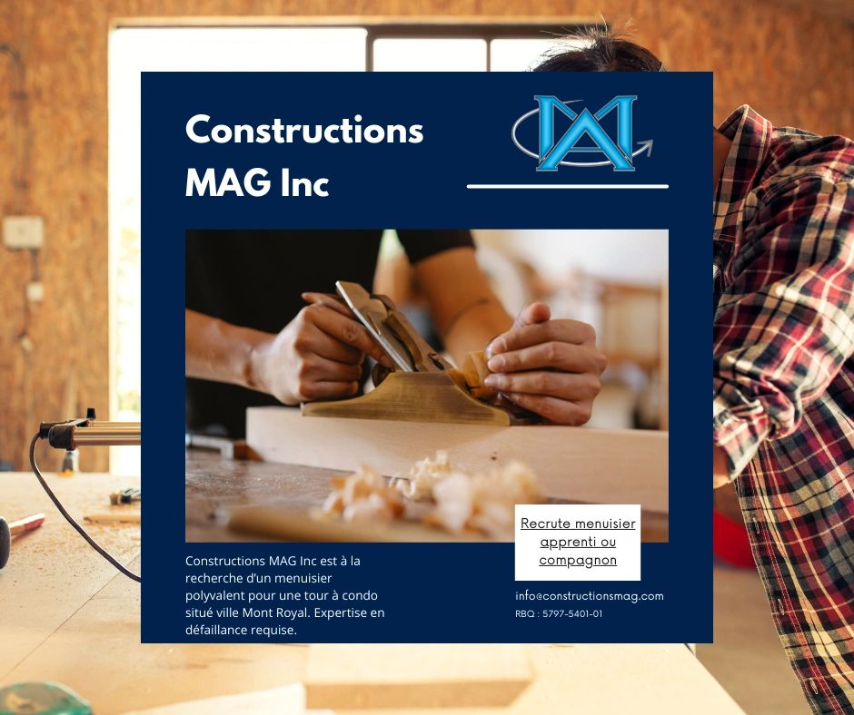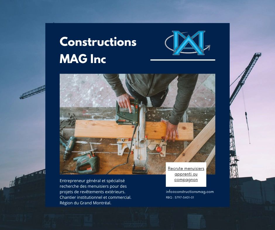 Menuisiers polyvalent avec une expérience en défaillance en construction situé Grand Montréal.